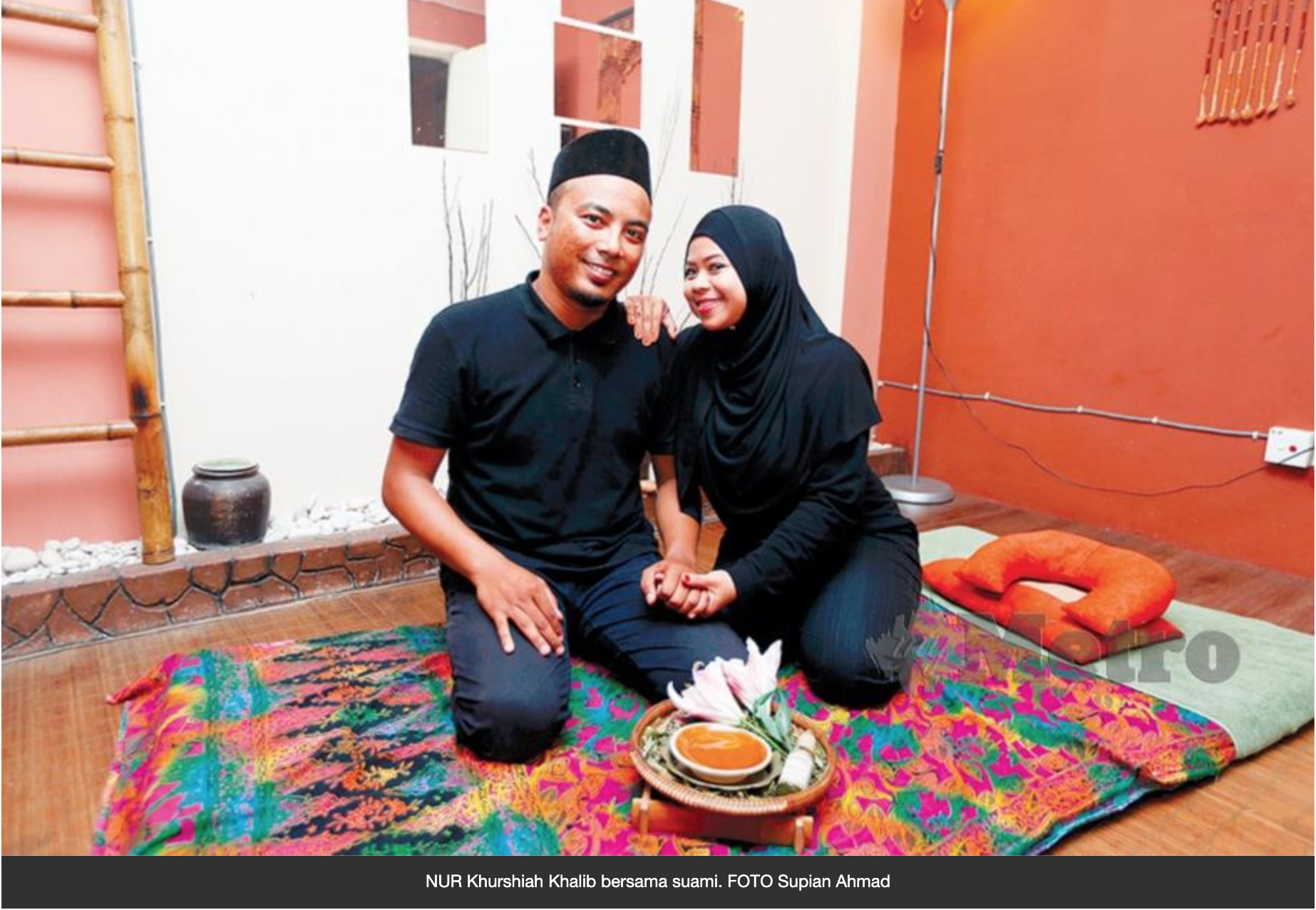 Sebagai ikhtiar untuk ‘panaskan’ kembali suasana ketika bersama, Nur Khurshiah berkata, urutan boleh membantu. Urutan khusus akan diberikan kepada wanita oleh Nur Khurshiah sendiri sementara pasangan pula diuruskan suaminya, Abd Khalil Abd Aziz yang turut memiliki kemahiran urutan sama.