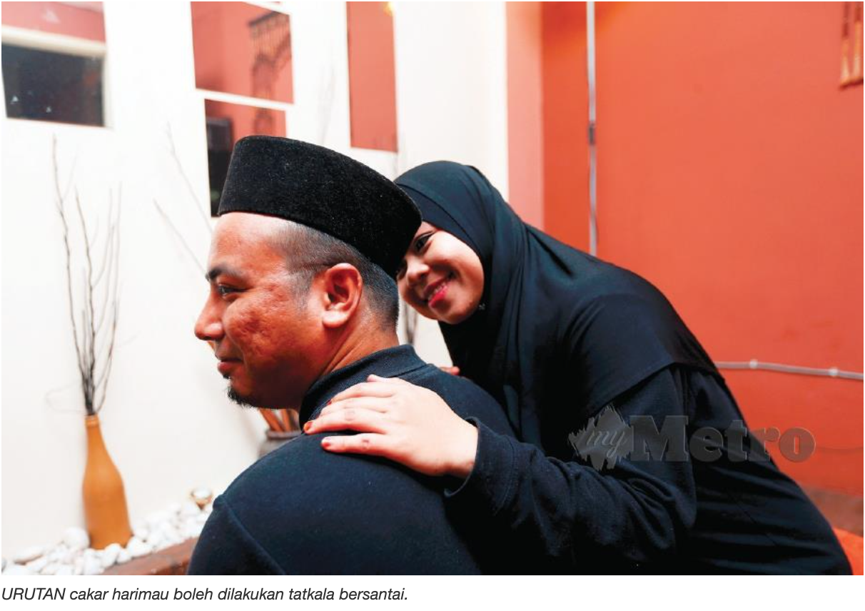 “Manakala kalau dalam ruang beradu, untuk panaskan badan sebelum bermesra, rasanya suami boleh cuba pelajari urutan tasak dan pasak. Ini boleh tingkatkan rasa teruja ketika berhubungan,” katanya.