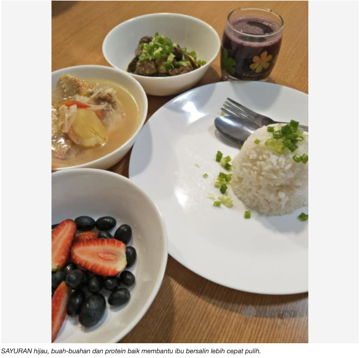 “Biasanya saya sarankan banyakkan makanan sayur-sayuran terutama yang hijau dan pengambilan protein boleh percepatkan pulih luka dalaman,” katanya.